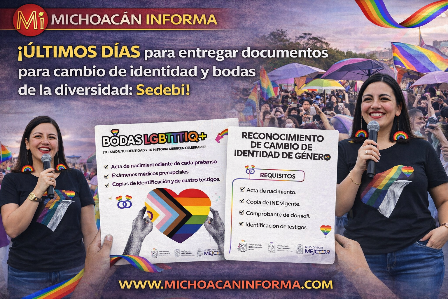 Morelia, Michoacán, 13 de enero de 2026.– La Secretaría del Bienestar (Sedebi) informó que el próximo 20 de enero concluye el periodo de recepción de documentos para participar en la jornada “Bodas de la Diversidad Sexual y Reconocimientos al Cambio de Identidad de Género. Un legado de lucha y resistencia”.