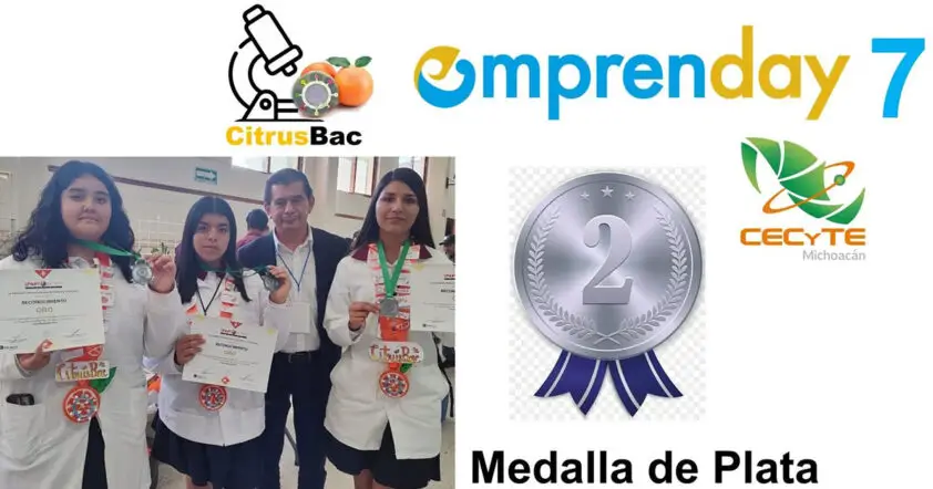 La medalla de plata correspondió a Dana Paola Oliveros Pinceno, Evelyn Reina Hernández Puga y Camila Govea Ayala, quienes presentaron CitrusBac, investigación sobre la capacidad bactericida de los extractos naturales de la toronja contra la bacteria Escherichia coli.