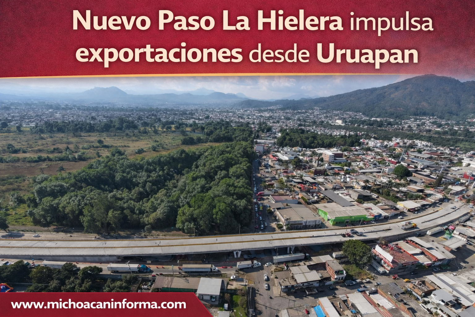Uruapan, Michoacán, 23 de febrero de 2026.- El Paso La Hielera consolida a la región como un nodo estratégico para el comercio exterior, al facilitar la conexión directa con la autopista Siglo XXI rumbo al Puerto de Lázaro Cárdenas, informó la Secretaría de Desarrollo Económico (Sedeco).Esta conectividad es clave si se considera que Michoacán produce cerca del 75 por ciento del aguacate nacional y lidera las exportaciones de este fruto a nivel mundial. El nuevo distribuidor vial permite reducir tiempos de traslado del transporte pesado que moviliza aguacate desde centros de empaque hacia la autopista y posteriormente al puerto, evitando tráfico urbano y eliminando cuellos de botella.